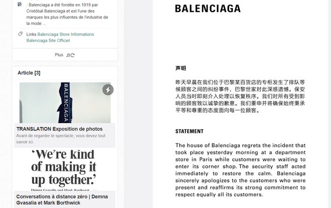 Balenciaga s’excuse sur Weibo suite aux incidents au Printemps